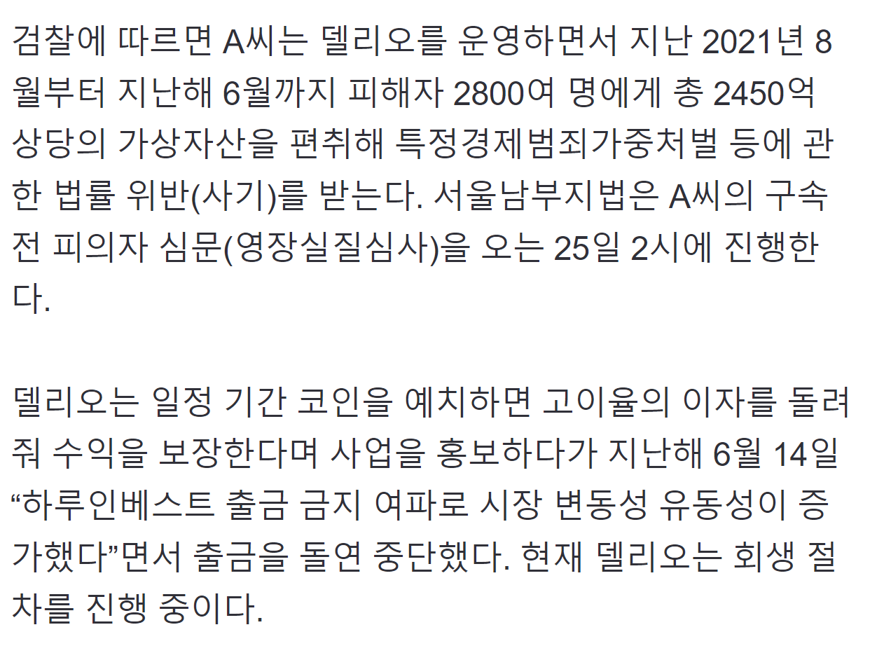 검찰, 2540억원 코인 가로챈 델리오 대표 구속영장