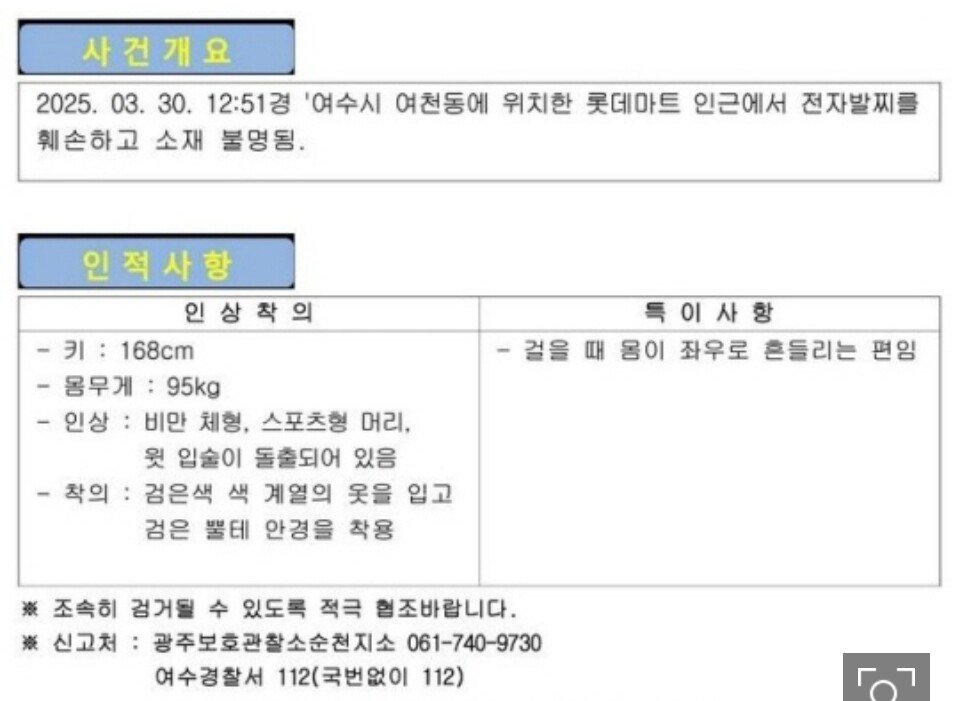 [속보]여수서 전자발찌 끊고 달아난 40대男 공개수배…“스포츠형 머리”