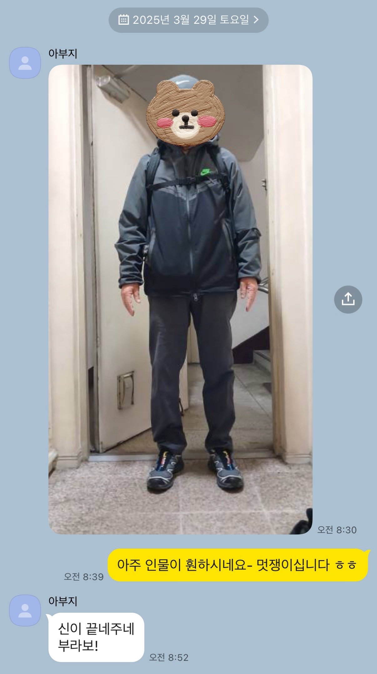 너무 좋아하시더니 오늘 등산가는 사진보내심 ㅋㅋ