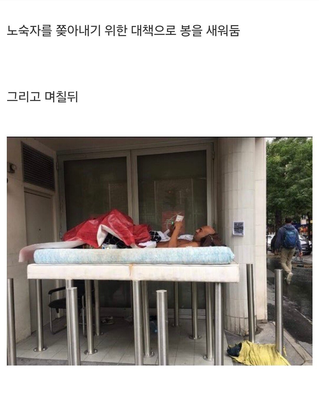 노숙자 때문에 골치 아프던 건물주의 대책