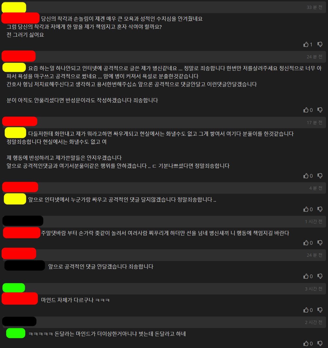 실시간 커뮤에서 통매음으로 ㅈ된 사람