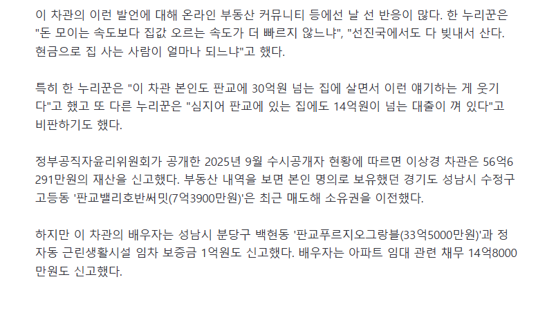이 발언을 국토부 차관이 한 것, 정작 본인 배우자는 부동산 대출 약 15억 껴있는게 유머 ㅋㅋ