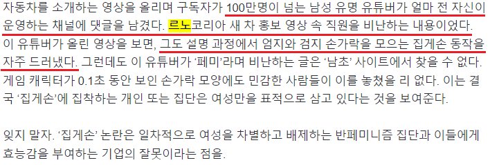 1. 모 유튜버가 르노 홍보영상 속 집게손 논란을 "설명하는 과정" 에서 집게손 동작을 했지만, 아무도 비난하지 않는다.