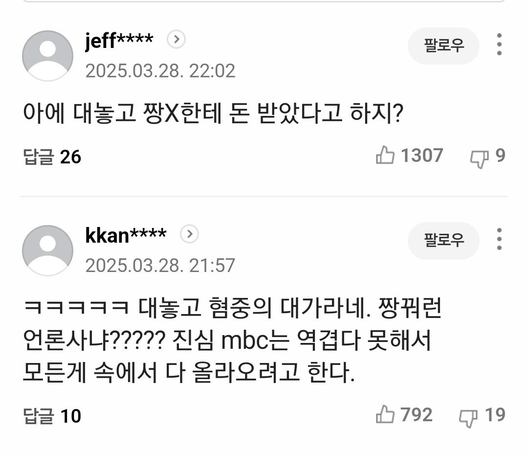 다른 사용자들에게 불쾌감을 줄 수 있는 욕설이나 비방 목적의 댓글은 관리자에 의해 삭제될 수 있습니다.