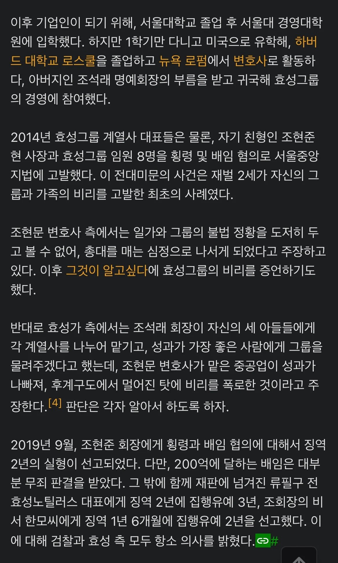 전 무한궤도 멤버, 효성 차남 조현문 "상속재산 전액 사회에 환원"