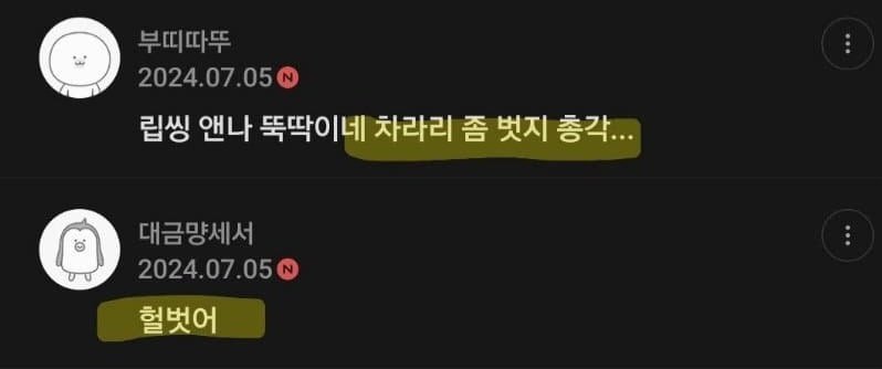다른 사용자들에게 불쾌감을 줄 수 있는 욕설이나 비방 목적의 댓글은 관리자에 의해 삭제될 수 있습니다.