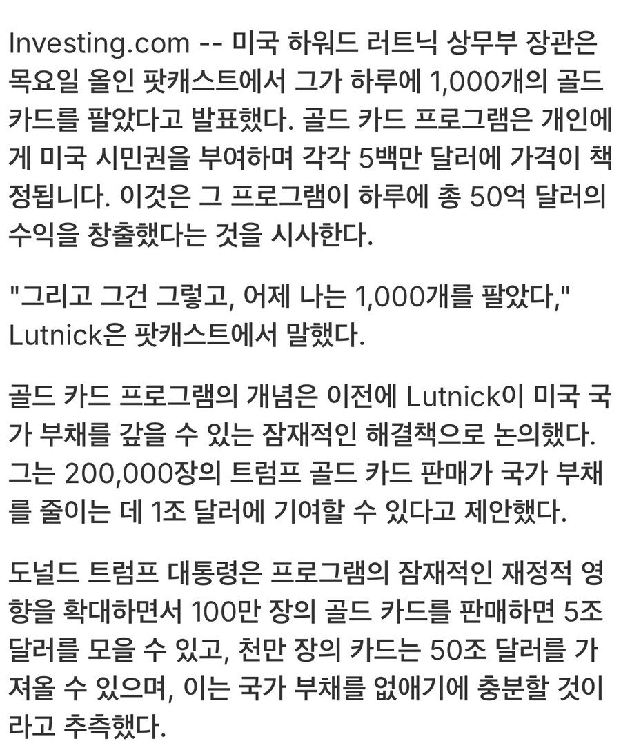 하루만에 7.3조원 어치 영주권을 팔아치운 트럼프