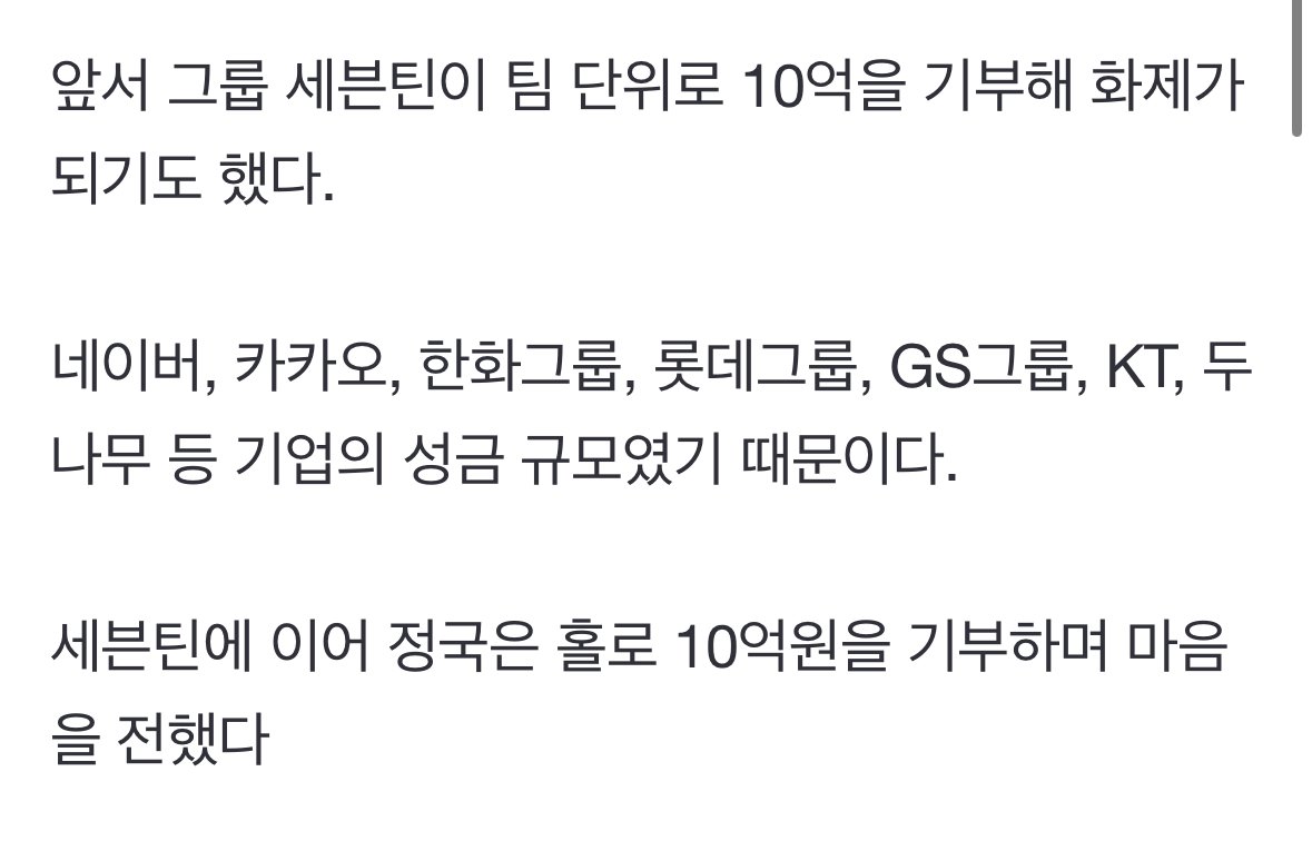 각각기업과 그룹단위로 10억씩 기부했는데,