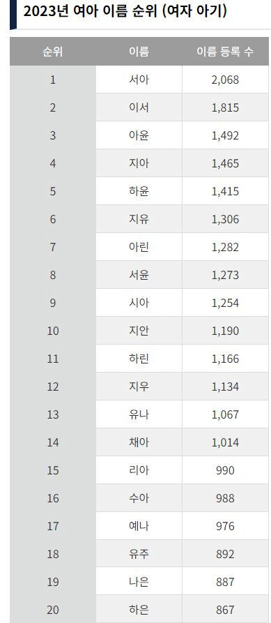 2023년 남아 여아 이름 순위 Top 20.jpg