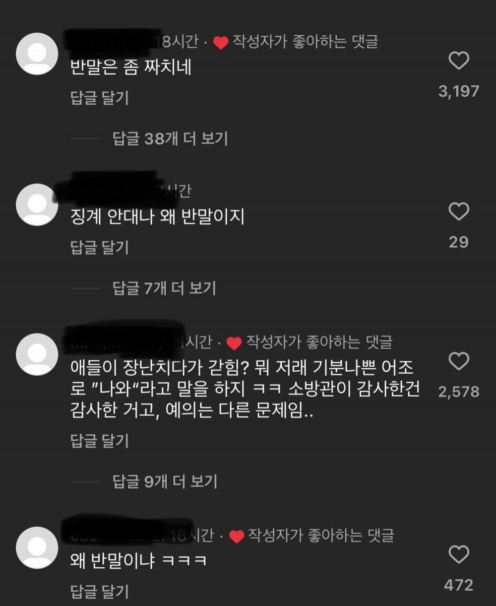 인스타에서 불타고있는 어느 소방관의 말투.jpg
