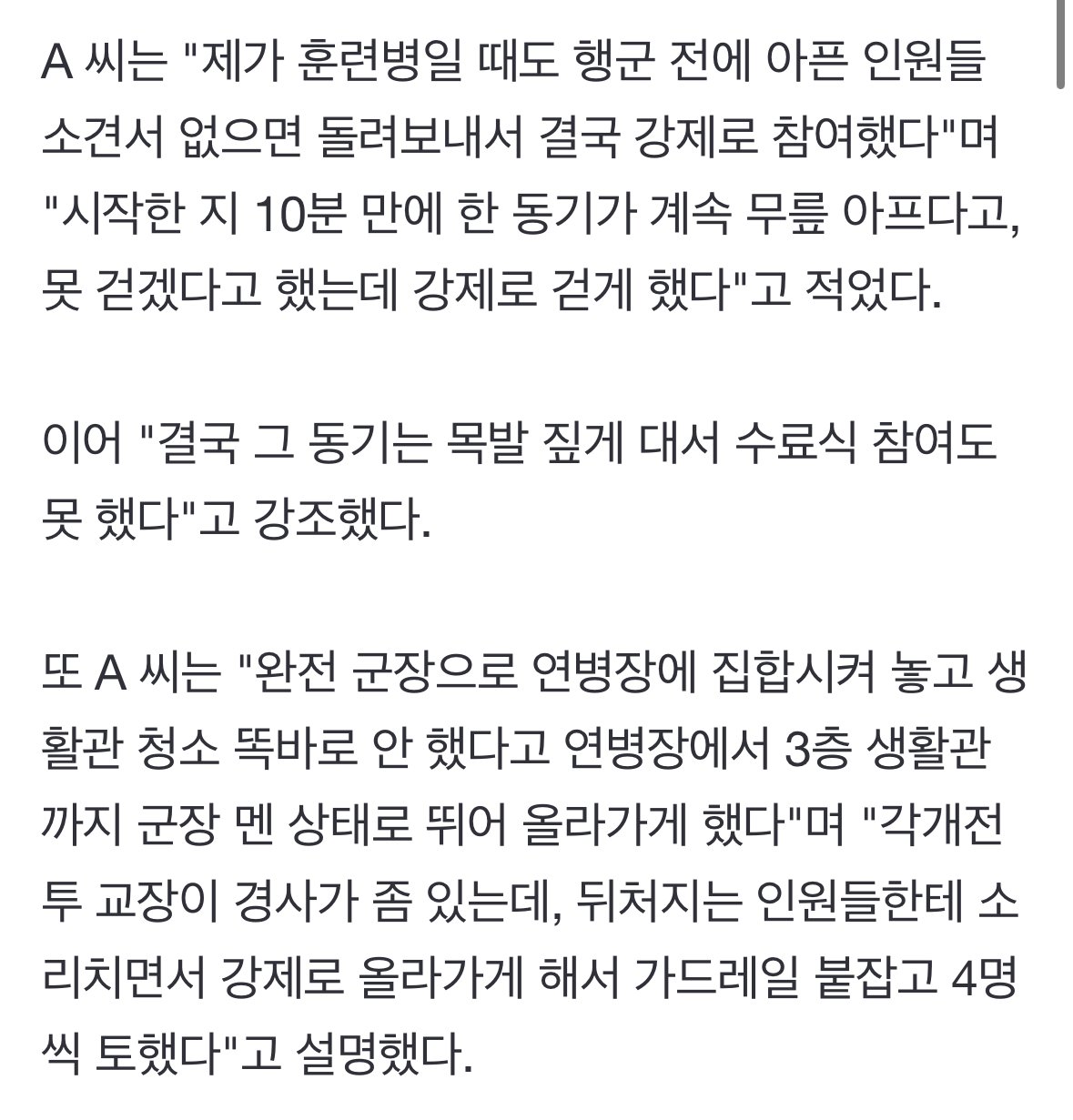 "강제 행군 뒤 목발…완전 군장 뛰다 구토" 얼차려 중대장 폭로 또 터졌다
